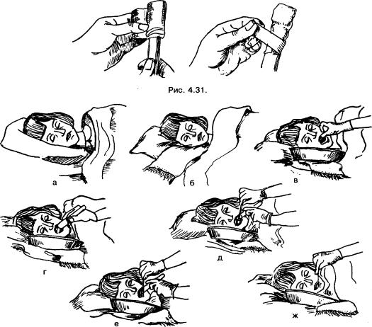 У х о д з а п о л о с т ь ю р т а п а ц и е н т а в б е с с о з н а т е л ь н о м с о с т о я н и и ( р и с . 4 . 3 2 ) |