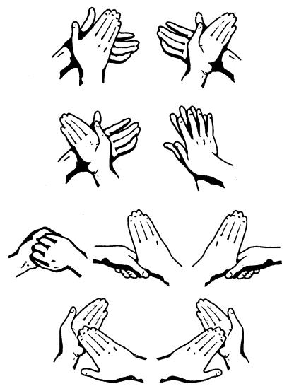 а) энергичное механическое трение ладоней — 10 с, повторить 5 раз; |