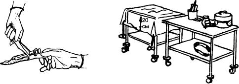 цирующих с р е д с т в . Надев стерильные перчатки, стол покрывают с т е р и л ь н о й про |