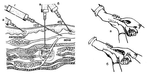 7. Ввести иглу п о д углом 45 ° в основание кожной складки на глубину 15 мм