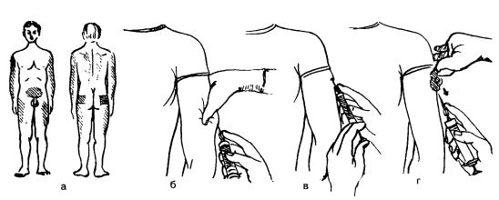 Д л и н а иглы для внутримышечной инъекции в эту область зависит от толщины п о д к о ж н о ж и р о в о г о слоя пациента: при чрезмерной — длина иглы 60, при у м е р е н ной — 4 0 мм .