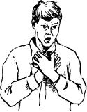 Обструкцию дыхательных путей вызывают и механические инородные тела (кусочки п и щ и , маленькие и г р у ш к и , рвотные м а с с ы , слюна, мокрота).