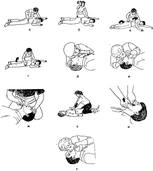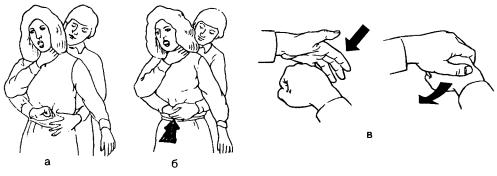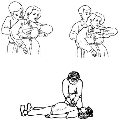 5)повторять грудные толчки до восстановления проходимости дыхательных путей или прибытия «скорой помощи» .