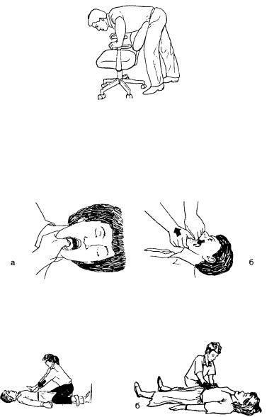 Если пострадавший теряет сознание во время выполнения спасателем б р ю ш ных или грудных толчков, следует бережно опустить его на пол, попросить когонибудь вызвать «скорую помощь» и выполнять все этапы до тех пор, пока не вос становится п р о х о д и м о с т ь дыхательных путей, или прибудет «скорая помощь».
