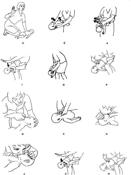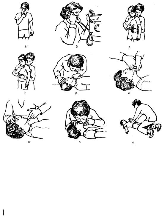 П о м о щ ь р е б е н к у в в о з р а с т е 1 — 8 л е т п р и п о л н о й о б с т р у к ц и и д ы х а т е л ь н ы х п у т е й ( р и с . 1 5 . 2 0 )