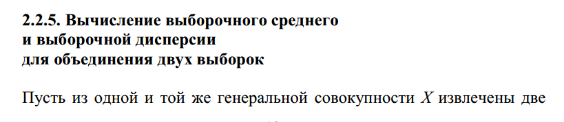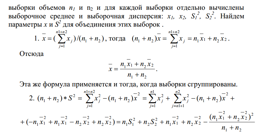 Вычисления среднее и дисперсии обединение