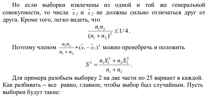 двух выборки. Вычисления общие,