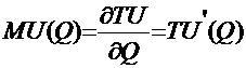 Общая (полная, суммарная) полезность (total utility, TU) - совокупная полезность, получаемая покупателем при потреблении некоторого количества данного блага.