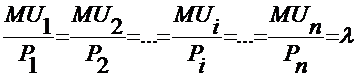 Условие равновесия (оптимума) потребителя при кардиналистcком подходе
