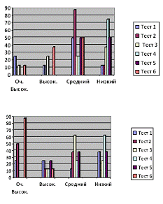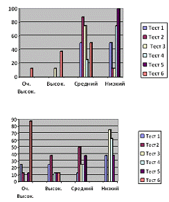 По развитию силовой выносливости показатели распределяются следующим образом: по 25% приходится на высокие показатели и по 37,5% - это средний и низкий уровни. Развитие координационных способностей, как и в предыдущей группе, имеет неплохие результаты.