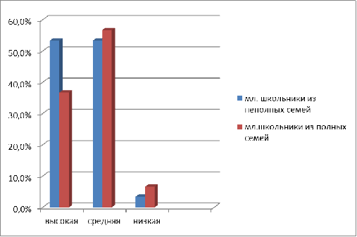 процентном соотношении больше, чем у школьников из полных семей. Более наглядно