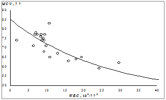 взаимосвязи между количеством лейкоцитов и средним объемом эритроцита имело