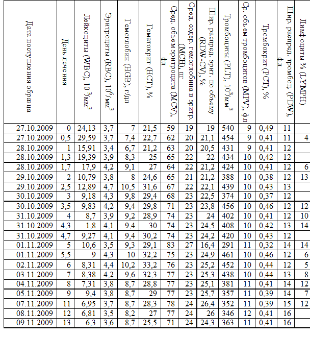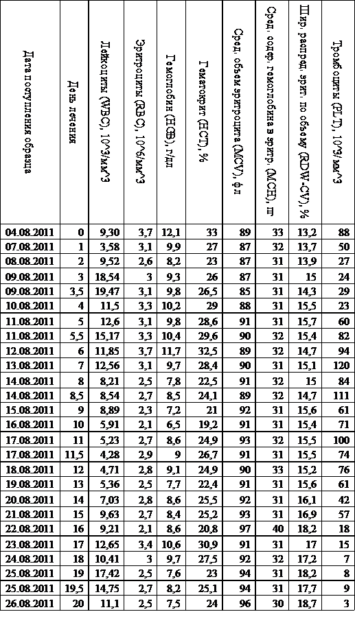 характеризующие изменение показателей крови в процессе лечения.