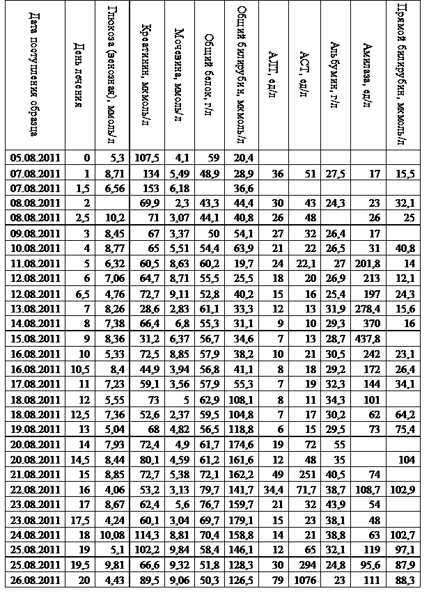 Таблица 1 - Биохимический анализ крови пациента Т.