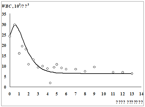 исходом заболевания) лейкоциты изменяются по S-функции (формула 3.5). При этом