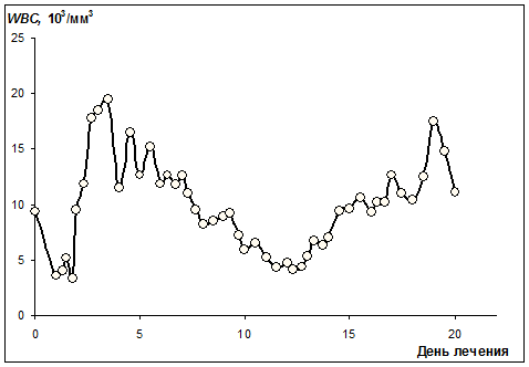 В первом случае в течение 15 суток анализировались количество лейкоцитов и