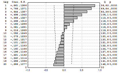 динамического ряда показателей использовалась автокорреляционная функция.