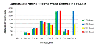 . Проанализировать динамику численности Picea fennica в разных климатических условиях на территории различных фитоценозов;