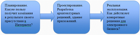 Разработка и внедрение систем электронного бизнеса в МСП требуют осуществления ряда глобальных изменений в информационной системе и в организации бизнес-процессов компании. Это означает, что необходимо осуществить значительный объем работ при непрерывном взаимодействии с консультантами и экспертами в области Интернет-бизнеса: