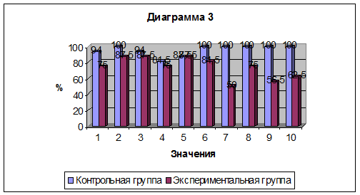 в экспериментальной. Соответственно со вторым - 100% и 87,5%, с третьим - 94% и
