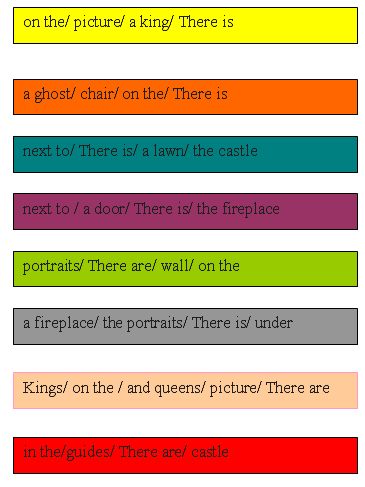 a forest / there is/ behind / the castle и т.д.