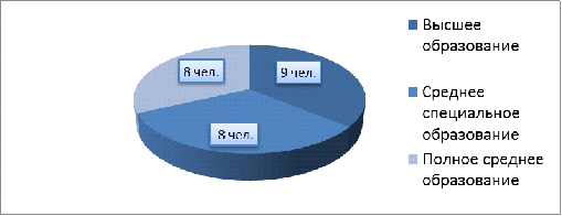 Так, из 25 членов трудового коллектива высшее образование имеют 9 человек