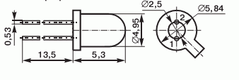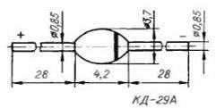 в стеклянном каплевидном корпусе КД-29А с жесткими выводами. На корпус прибора