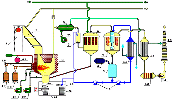 вентиляционная труба, 16 - узел золоудаления, 17 - система зажигания факела, 19