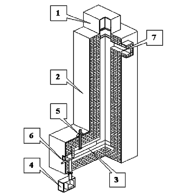 Печь шахтного типа (Рис.2) состоит из узла загрузки упаковок с отходами РАО (1), шахты (2) с расположенным в верхней части патрубком выхода пирогаза (7), плавителя (3), бокса приема шлака (4).