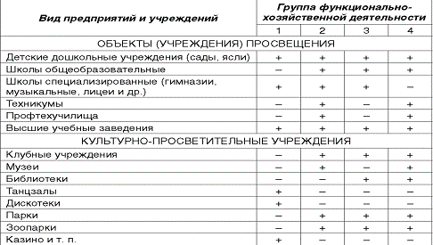 Таблица 1. Классификация предприятий и учреждений по группам их функционально-хозяйственной деятельности
