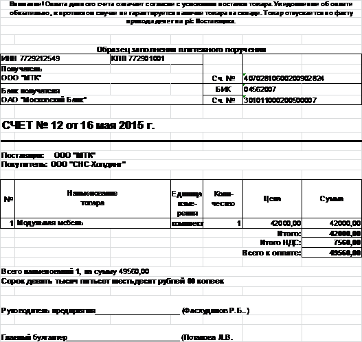 Бухгалтерский учет в ООО «СНС-Холдинг», осуществляется главным бухгалтером в соответствии с Положением о бухгалтерской службе. Задача бухгалтерской службы ООО «СНС-Холдинг» - это ведение бухгалтерского учета, анализ и помощь в составление планов (бюджетов) и отчетов об их исполнении. Достоверность хозяйственных операций, отраженных в первичных документах организации установлена путем проведения встречных проверок. При изучении первичных документов обращается внимание на полноту и правильность заполнения всех обязательных реквизитов, наличие подписей должностных лиц, ответственных за учет рабочего времени и выполнение работ, неоговоренные исправления и подчистки. Рекомендовано повысить качество оформляемых первичных документов. Данная мера повысит эффективность функционирования системы внутреннего контроля предприятия.