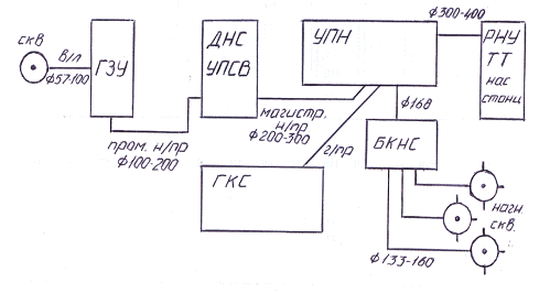 1. Нефтепромысловые объекты: скважины; кусты скважин; ГЗУ - нефтесборные сети; ДНС - технологические трубопроводы; УПС - технологические трубопроводы; УПСВ - технологические трубопроводы; КНС, БГ, нагнетательные скважины; УПГ.