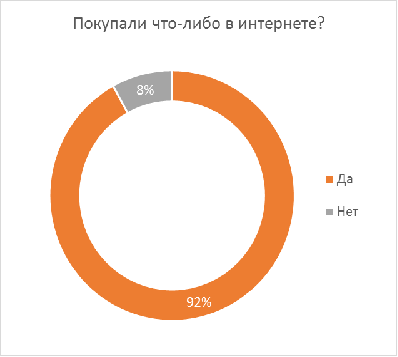 когда-нибудь товары в интернете», ответили утвердительно (92%), что