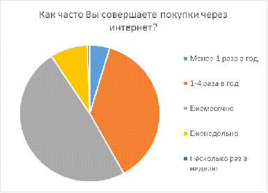 респондентов ответила, что совершает различные покупки в интернете ежемесячно