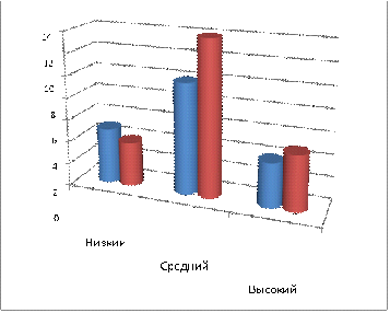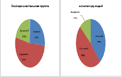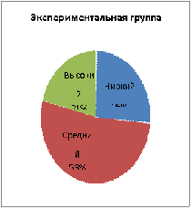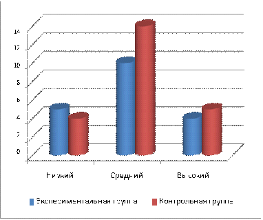 Сопоставляя группы, можно увидеть, что в экспериментальном классе детей со средним уровнем развития меньше, чем детей с низким уровнем, в то время как в контрольном классе таких детей поровну с низким и средним уровнем.