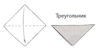 7. Что получится, если согнуть квадрат по диагонали, а противоположные диагонали углы согнуть к полученной диагональной линии: