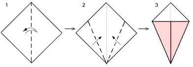 - Начиная работу с уже известной ребятам базовой формой, предложите кому-нибудь из класса начертить схему её складывания на доски или объяснить словами, как это сделать.
