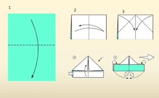 - учитель должен хорошо владеть всеми приёмами и методами складывания бумаги, которым обучает детей;