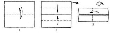 Нами был предложен новый приём обучения детей оригами. Этот приём основан на воспроизведении последовательности операций мысленно. Учитель объясняет, как делать ту или иную операцию, дети закрывают глаза и стараются себе представить этот процесс. Открывают глаза, учитель демонстрирует выполнение операции.