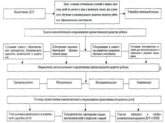 Анализ психологической литературы, практический опыт работы и сделанные на его основе выводы позволили нам разработать систему психологического сопровождения преемственности развития детей в период перехода детей из детского сада в школу. Ее необходимость диктуется тем обстоятельством, что до сих пор не решен вопрос, о том, как нужно сотрудничать детскому саду и школе, чтобы помочь детям быстро и результативно включиться в учебный процесс, основанный на развивающих технологиях, и сохранить физическое и психологическое здоровье, обеспечить их дальнейшее личностное развитие.