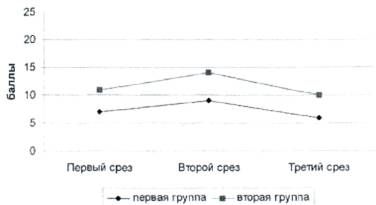 и выше среднего) школьники второй группы демонстрируют и на этапе окончания