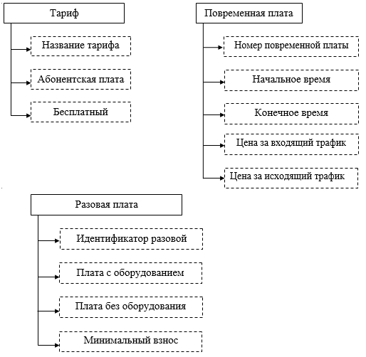 тарифа), Time_Payment (Повременная плата), IdSinglePayment (Разовые платежи). Даталогическая
