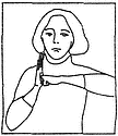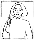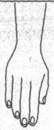 Растопыренные пальцы напряжённо вытянуты вверх, язык чашечкой.