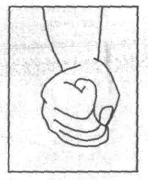 Пальцы «домиком», кончик языка напряженно прижат к верхнему нёбу.