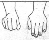 левой руки расположите на столе. Согнутыми указательным и средним пальцами