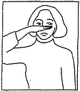 Пальцы вверх, руки от локтя до запястья прижаты друг к другу. Язык тянется к носу.