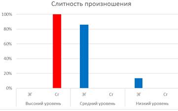 Результаты изучения слитности произношения детей с нарушениями слуха (ЭГ) и без нарушения слуховой функции (СГ) (%).