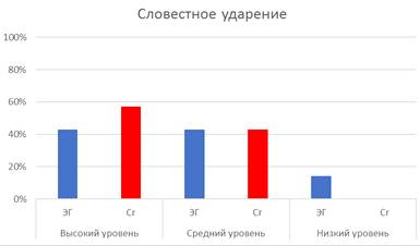 Результаты изучения соблюдения словесного ударения детей с нарушениями слуха (ЭГ) и без нарушения слуховой функции (СГ) (%).