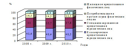 На рисунке 2.8 видно, что максимальный удельный вес кредитного портфеля приходится на коммерческое кредитование юридических лиц.