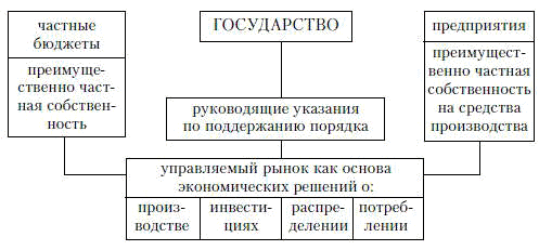 Теоретические основы социального рыночного хозяйства были заложены в рамках концепции ордолиберализма В. Ойкеном, Ф. Бемом, Л. Эрхардом. Принципиально отличие теории социального рыночного хозяйства от иных направлений экономической мысли заключается в том, что предмет деятельности экономических субъектов, в том числе и государства целостная система, функционирующая в неразрывном единстве экономических и социальных институтов. Модель социального рыночного хозяйства, созданная в рамках ордолиберализма, основывается, прежде всего, на признании рынка в качестве ведущего социально-экономического института. В основе развития общества всеобъемлющая конкуренция и система договорных отношений. Позднейшая модификация ордолиберальной модели социального рыночного хозяйства А. Мюллером Армаком ориентирована на более активную роль государства в экономической жизни общества.